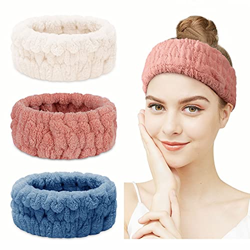 Fascia per Capelli Spa - 2 pezzi Fascia per Viso Spa per Trucco e Lavaggio Viso Fascia Elastica Donna per Spa Yoga Sport Doccia Fascia per trucco (Bianco latte+rosa scuro+blu scuro)