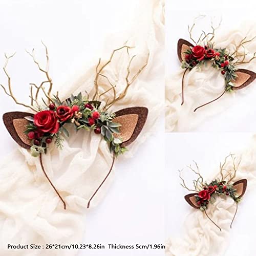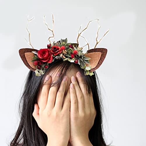 [Crea un'atmosfera felice]: fascia natalizia a forma di renna con fiori finti per forniture per feste di Natale. Con un design unico delle corna, è bello creare un'atmosfera divertente e felice. ?È normale che le foglie cadano?.