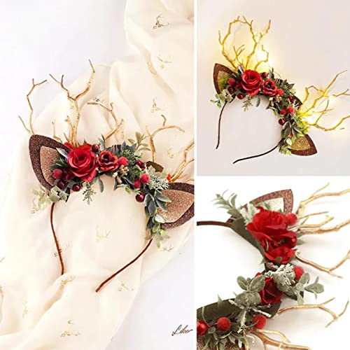 Fascia per capelli di renna-Natale Corna di renna, Cerchietto per capelli con corna di fiori, Fascia per capelli con corna di cervo a LED Fascia per orecchie che illuminano (Ordinario,1 PZ)