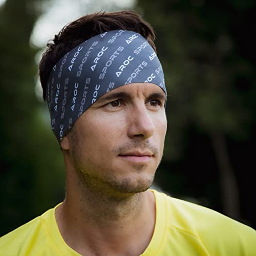 Fascia per capelli reversibile | leggera ed elastica | Tecnologia Aroc Dry - ad asciugatura rapida, assorbe il sudore | trekking, corsa, ciclismo, sci (confezione singola, nero/grigio