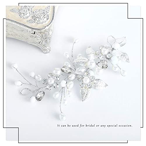 Fascia per capelli da sposa con perle di cristallo, Wedding Crystal Hair Vines Fiore Foglia Copricapo Accessori per capelli da sposa, per donne e ragazze