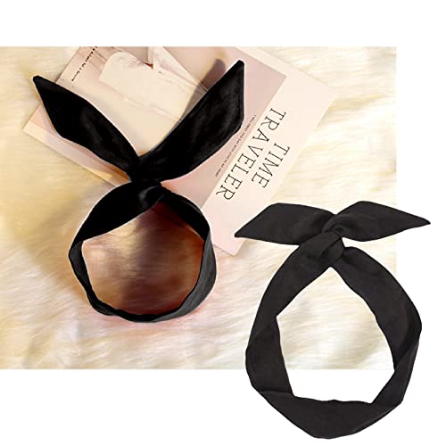 Fascia per capelli vintage con fiocco | Fascia per capelli pieghevole a forma di coniglietto per orecchie Bow Twist Bow | Accessorio per capelli da donna | (nero)