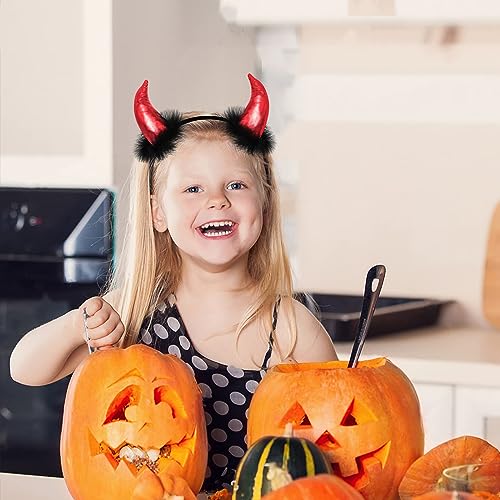 JunD Fascia Con Corno Da Diavolo, 2 Pezzi Corno Diavolo Halloween Copricapo Cornuto, Accessori Capelli Halloween Corna Diavolo Orecchie Diavolo Fascia per Foto e Cosplay per Carnevale (Rosso)