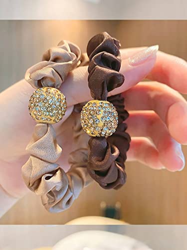 Fascia elastica per capelli da donna, in raso, piccola scrunchie con strass, per capelli spessi e sottili, per ragazze e donne (nero, marrone, motivo leopardato, caffè leggero)