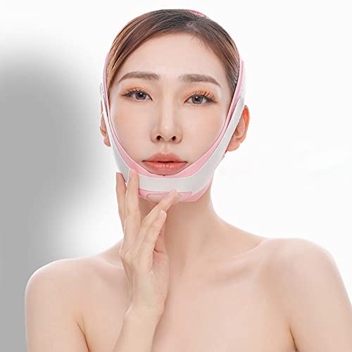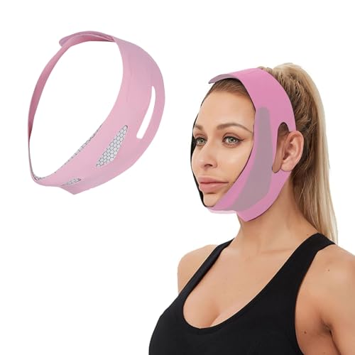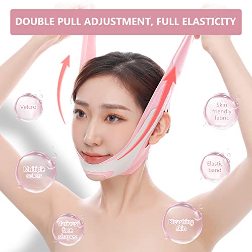 Fascia Elastica per Il Mento,Maschera Viso Snellente Bende,Fascia Lifting Viso,Doppio riduttore di mento,V-Shape Slimming Mask,Fascia per bendaggio del viso(Rosa)