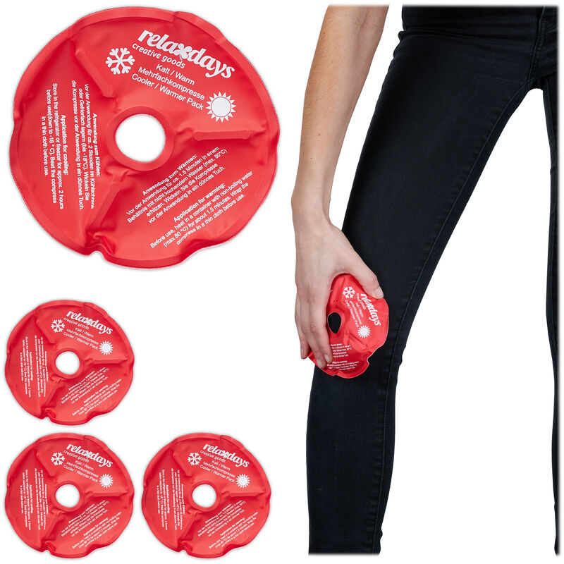 I dolori alle ginocchia provocati da lesioni sportive, sinoviti o problemi articolari sono spesso spiacevoli e necessitano un intervento immediato: in tal caso è ideale una terapia a caldo o a freddo. Il sacchetto forato si adatterà al ginocchio e lo fascerà in modo ottimale. A seconda dell'uso previsto, raffredda gli impacchi nel freezer o riscaldali nel microonde o a bagnomaria. Cuscinetti termici per ginocchia in dettaglio - Misure cuscinetto H x D: 1,5 x 14 cm ca. - Diametro foro: 2,5 cm ca. - Peso: 110 g ca. - Materiale: poliestere, gel - Colore: rosso, bianco Gel termici per ginocchia - Applicazione a freddo: in caso di lesioni sportive, dopo operazioni al ginocchio, ecc. - Applicazione a caldo: in caso di artrosi o altri problemi articolari cronici - Si adatta perfettamente alla forma del ginocchio - L'incavo per la rotula consente la massima flessibilità quando si indossa il cuscinetto - Rimangono malleabili fino a -18 °C così che possano adattarsi al meglio al ginocchio