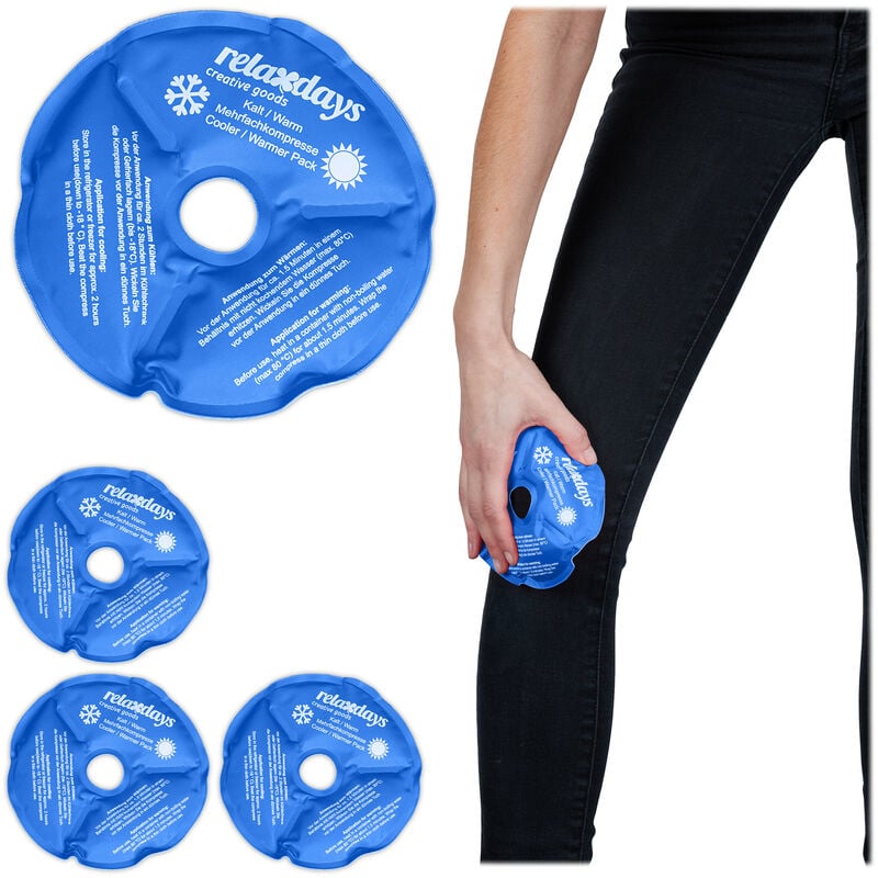 I dolori alle ginocchia provocati da lesioni sportive, sinoviti o problemi articolari sono spesso spiacevoli e necessitano un intervento immediato: in tal caso è ideale una terapia a caldo o a freddo. Il sacchetto forato si adatterà al ginocchio e lo fascerà in modo ottimale. A seconda dell'uso previsto, raffredda gli impacchi nel freezer o riscaldali nel microonde o a bagnomaria. Cuscinetti termici per ginocchia in dettaglio - Misure cuscinetto H x D: 1,5 x 14 cm ca. - Diametro foro: 2,5 cm ca. - Peso: 110 g ca. - Materiale: poliestere, gel - Colore: blu, bianco Gel termici per ginocchia - Applicazione a freddo: in caso di lesioni sportive, dopo operazioni al ginocchio, ecc. - Applicazione a caldo: in caso di artrosi o altri problemi articolari cronici - Si adatta perfettamente alla forma del ginocchio - L'incavo per la rotula consente la massima flessibilità quando si indossa il cuscinetto - Rimangono malleabili fino a -18 °C così che possano adattarsi al meglio al ginocchio