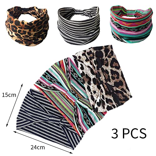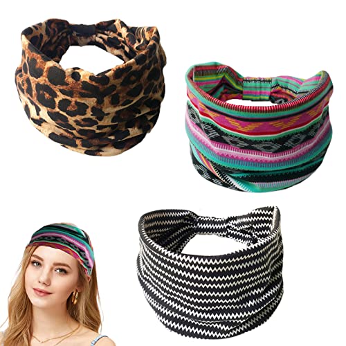 Fascia Larga per Capelli,Boho Fasce Elastiche per Capelli,Accessori per Capelli con Turbante per Donne e Ragazze,Confezione da 3 Pezzi