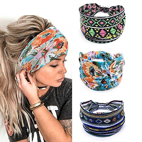 Yean Fascia larga per capelli vintage con turbante turbante per yoga, fascia elastica per capelli a righe, fascia per capelli per donne e ragazze, 3 pezzi