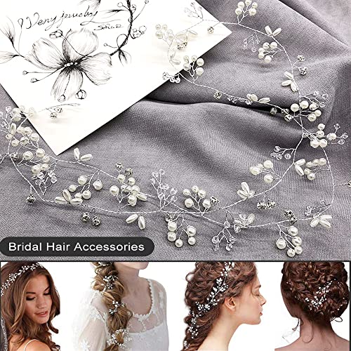 50cm Fascia Nuziale Per Capelli Con Perline e Strass, Capelli Sposa Kit Accessori, Forcine Nuziale per Acconciatura Matrimonio Donne e Ragazze (Argento)