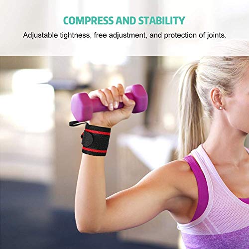 KSTE Fascia da polso regolabile - Bende elastiche rosse regolabili con striscia nera, protezione for esercizio traspirante for distorsioni e stiramenti del polso deboli
