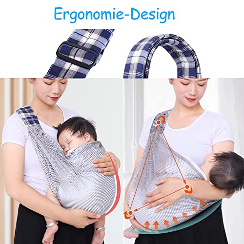 ADSQ Fascia Porta Bebe Rete, Baby Sling Carrier, Fascia per Bebè Estiva, Soft Baby Carrier Infant Hands Free Babies Carrier Wrap, per Neonati Fino a 44 Libbre, Regolabile, Portatile