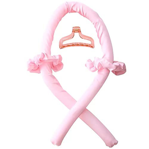 Fascia per ricci senza calore, nastro per bigodini in velluto, bigodini antiscivolo senza calore con forcina, formatori di onde notturne, fascia anti-calore per arricciature per capelli lunghi (rosa)