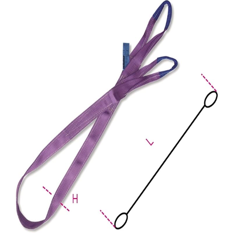Nastro in poliestere H 30 mm., colore viola. Portata 1000 Kg. Asole rinforzate con protezioni antusura: Asola piatta. Prodotto secondo Norma UNI EN 1492-1. Collaudo in base a specifiche e regole interne in riferimento alla norma UNI EN ISO 9001. L'articolo e' Conforme alla Direttiva Macchine 2066/42/CE. WLL: Carico massimo di Esercizio: Sollevamento Dritto: 1T - Sollevamento a strozzo 0,8T - Branca uso a U: parallela: 2T;