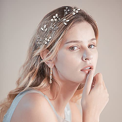 50cm Fascia Sposa, VEGCOO Accessori per Capelli con Perline e Strass - Capelli lunghi Vines Fasce Copricapo da Sposa per Spose e Damigelle (con 4 pezzi fermagli per capelli)