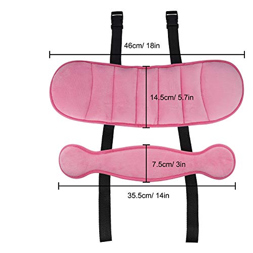 Fascia Testa Seggiolino Auto,Supporto Testa Bambini Cuscino da Viaggio Regolabile Poggiatesta Auto Bambini Confortevole per Dormire Sicurezza Lunghi Periodi di Guida, Rosa