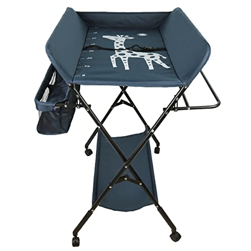 Fasciatoio Pieghevole per Neonato con Struttura Stabile,Fasciatoio per Bambini, Salva Spazio, per Cambio Pannolino,4 ruote con freno,con Scomparti Portaoggetti (80 * 66 * 98 cm (blu scuro))