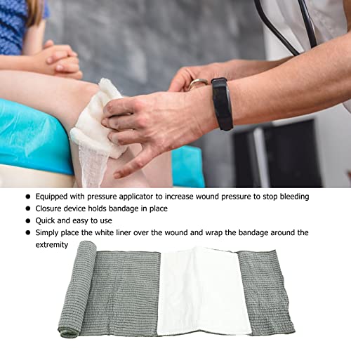 Applicatore di pressione: il bendaggio compressivo di emergenza è dotato di un applicatore di pressione per aumentare la pressione della ferita per fermare l'emorragia e un dispositivo di chiusura per mantenere il bendaggio in posizione.