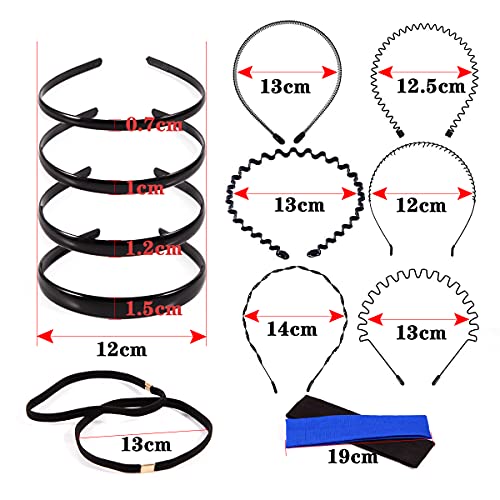 Confezione: 14 pezzi in una confezione, tra cui 4 fasce sportive per il sudore, 5 fasce per capelli in plastica e 5 fasce per capelli onde, quantità sufficiente per il tuo ricambio e la sostituzione nell'uso quotidiano, puoi usarli in base alle tue esigenze di stile, stili di abbigliamento e occasioni.