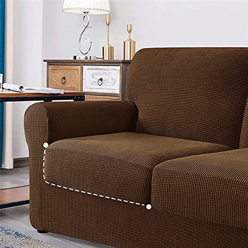 FASCINATDECO Copridivano Elasticizzato 7-Pezzi, Copridivano con Tre Schienali Separati E Cuscini con Fascia Elastica, Tessuto Jacquard Spandex A Quadri (caffè,1 Posto (80-120 cm))