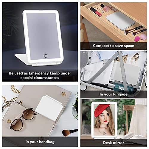 Specchio portatile con luci: con una piccola dimensione di 5 * 7,5 pollici, questo specchio per il trucco illuminato è perfetto per i viaggi. Puoi metterlo nella borsa per sistemare il trucco.