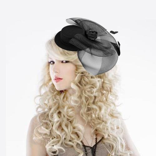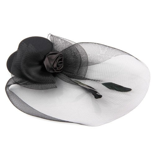 ROSA FASCINATOR CAPPELLO DA CERIMONIA FESTE NERO GOTH