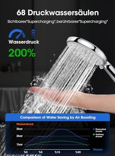 【Risparmio Idrico Ad Alta Pressione】Sulla base della ricerca e dell'analisi della pressione dell'acqua della doccia e delle esigenze di risparmio idrico di oltre 2.000 famiglie, abbiamo determinato che il tasso di risparmio idrico ottimale è di 9,5 l/min.I soffioni FASDUNT con tecnologia di risparmio idrico ad alta pressione possono utilizzare fino al 40% di acqua in meno rispetto ai prodotti tradizionali senza rinunciare al comfort, anche un'ottima esperienza di doccia.