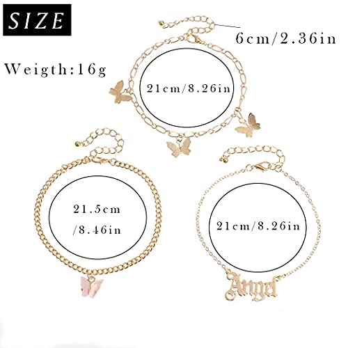 Fashband, cavigliera con ciondolo a forma di farfalla rosa, cavigliera a forma di angelo, in oro, per la spiaggia, per donne e ragazze.