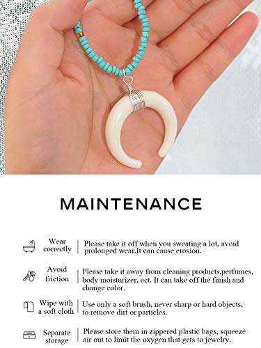 La collana in corno d'oro è realizzata in lega, turchese e finto bue. Design semplice ed elegante. È abbastanza delicato ed è perfetto per quello che stavi cercando.