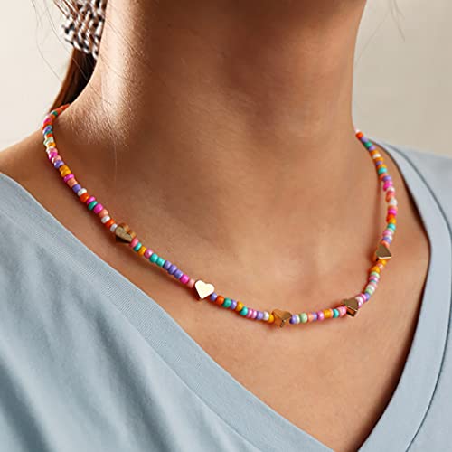 Fashband Collane Girocollo con Perline Colorate Collana Cuore Boho Collana Spiaggia Estiva Gioielli per Donne e Ragazze