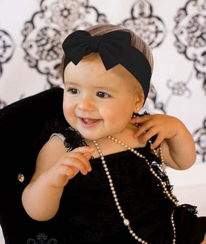 Fashband Baby Girl Fasce in nylon Bowknot Fasce elastiche per capelli Morbido copricapo carino per bambini Neonati (confezione da 3)(Schwarz)