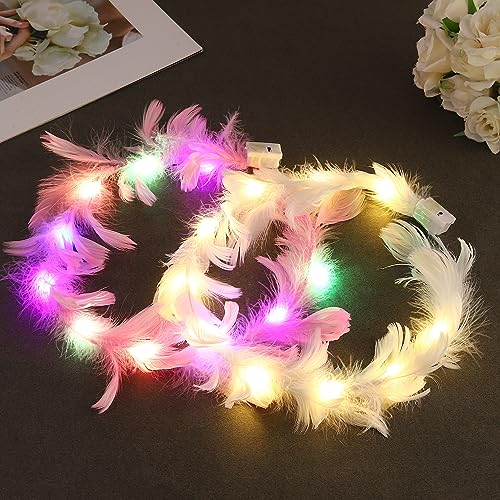 Fashband Ghirlanda luminosa per capelli con corona di piume, accessori per capelli per feste per donne e ragazze (confezione da 2) (piuma)