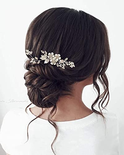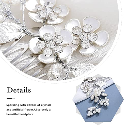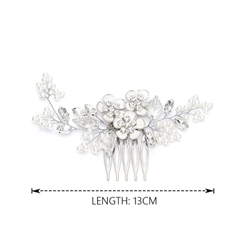 Fashband Pettini per capelli da sposa con fiore e foglia d'argento, con perle di cristallo, accessorio per capelli da sposa per donne e ragazze