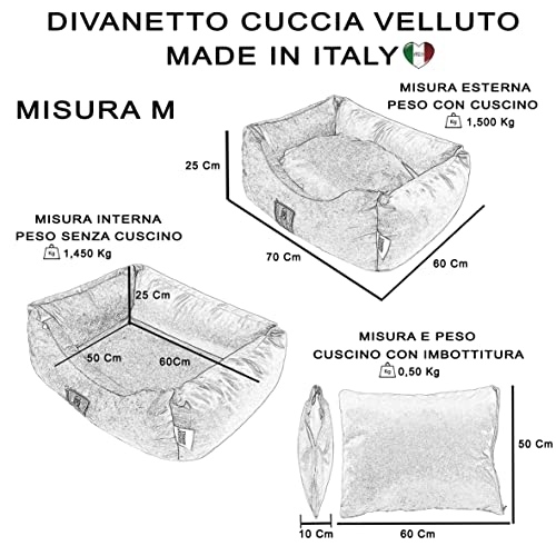 FASHION ANIMALS Divanetto, Letto, Cuccia in Pregiato Velluto, interamente Sfoderabile per Cani, Gatti, Made in Italy (M, Giallo)