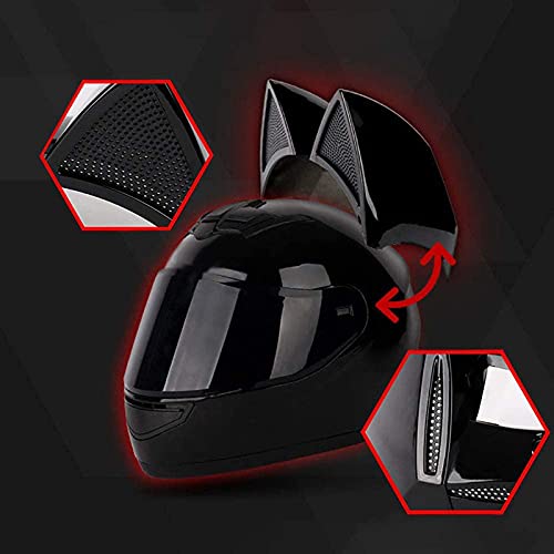 ZHEN Fashion Bluetooth Orecchie di Gatto Casco Integrale,Personality Casco Modulare con Lenti Antiappannamento Certificato ECE Adatto per Tutte Le Stagioni Motocross Casco Uomo E Donna