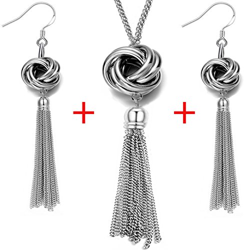Fashion HW Collana lunga con nappa con fiocco e catena serpente argento da donna