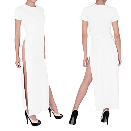 Donna piena lunghezza massima ridisegnate lunghi intaglio at laterale maxi vestito