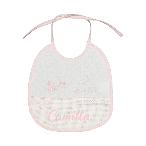 Fashion Graphic Bavaglino Bavetta Cicogna E' nato E' nata anche Personalizzato Con Nome Cotone Made In Italy (Rosa)
