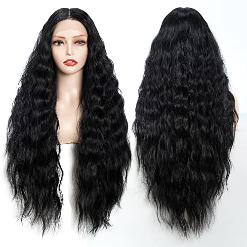 FASHION IDOL Parrucche lunghe ondulate sintetiche con pizzo frontale 30 pollici con parte centrale profonda parrucche di capelli per bambini per donne resistente al calore