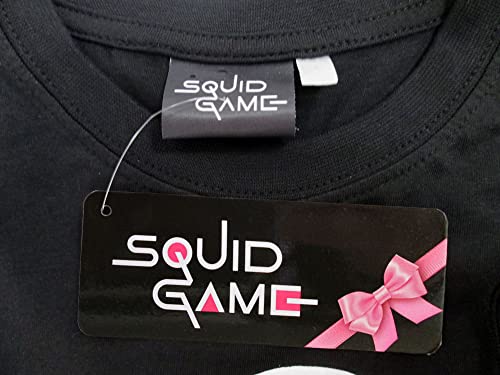 Fashion UK T Shirt Squid Game Ufficiale Gioco del Calamaro. Modello Campo da Gioco. Stampa Frontale. Maniche Corte. Nero. Taglie per Adulto Ragazzo (XS)
