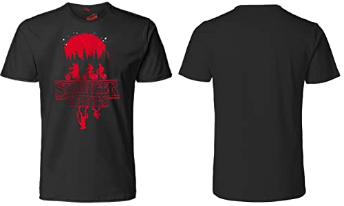 Fashion UK T Shirt Stranger Things Modello Biciclette con Stampa Frontale. Nera. Maniche Corte. 100% Cotone. Unisex. Prodotto ufficiale. Taglie da Adulto Ragazzo. (XXS)