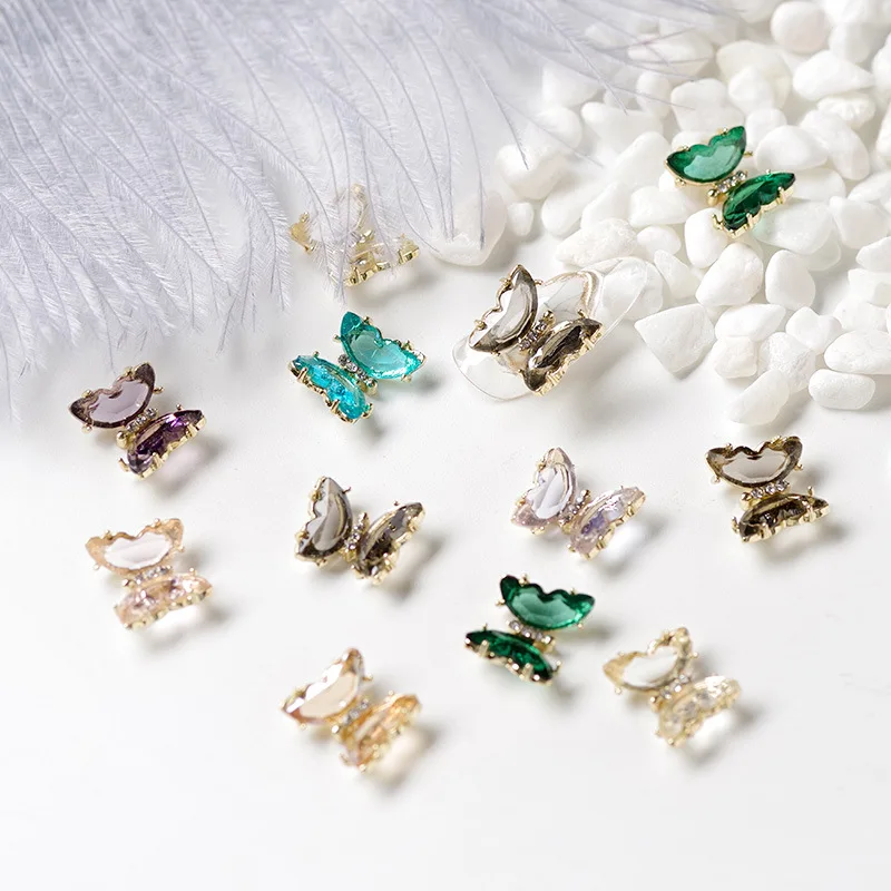 New Fashion Three-dimensional Crystal Butterfly Transparent Super Flash Alloy Rhinestone DIY Nail Decoration Accessories