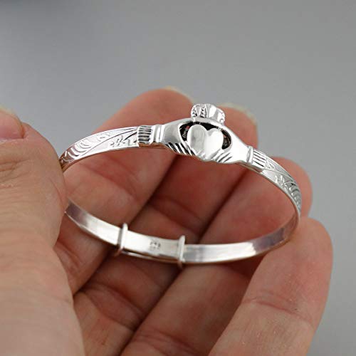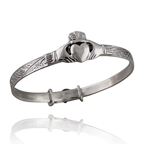 FashionJunkie4Life Argento Sterling Celtico Claddagh Baby - Bracciale Rigido Regolabile da 12,7 cm a 15,2 cm