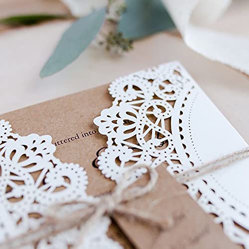 Fashmade 50 biglietti per inviti di nozze in bianco rustico con buste (50 RSVP vuoti)