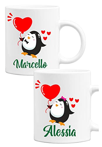 Fashwork Coppia Tazze PERSONALIZZABILI SanValentino Pinguini Regalo Lui e Lei innamorati Anniversario Matrimonio Fidanzati Innamorati