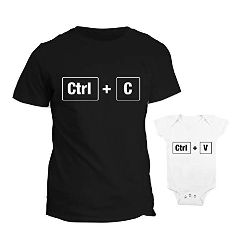 Fashwork Coppia Tshirt e Body neonato Padre Figlio Festa del Papà Ctrl + C, Ctrl + V - idea regalo