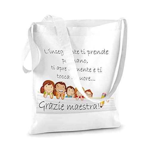 Fashwork Shopping Bag idea regalo Grazie Maestra - l'insegnante ti prende per mano, ti apre la mente e ti tocca il cuore
