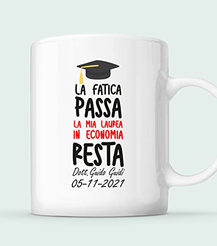 Fashwork Tazza Laurea Uomo PERSONALIZZABILE La fatica passa, la mia laurea resta PERSONALIZZA COL NOME DELLA FACOLTA' tazza mug laureato divertente Regalo Laurea