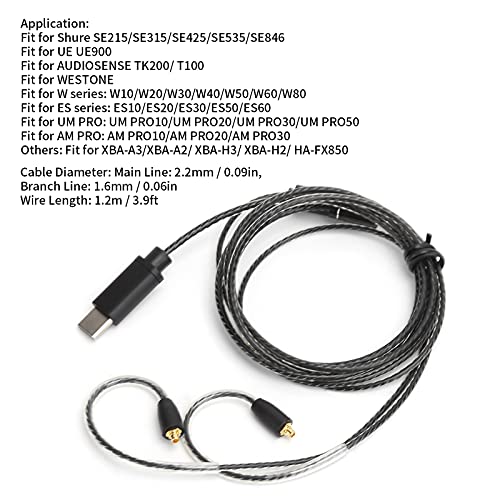 Fasient1 Cavo per Cuffie MMCX Tipo C, Cavo Audio Sostitutivo per Auricolari con Microfono, Controllo di Linea, per Shure SE215 / SE315 / SE425 / SE535 / SE846, per UE UE900, per WESTONE, ECC.