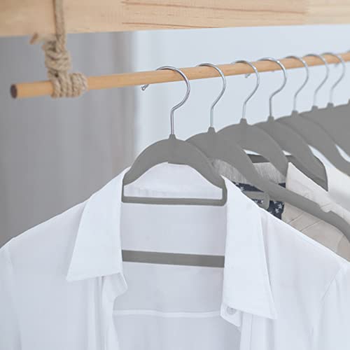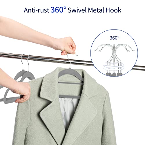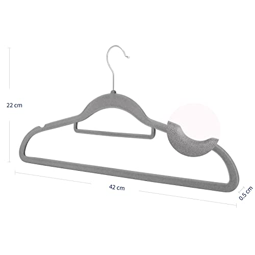 Fasiner Appendini in velluto da 60 pezzi, lunghi 42 cm, antiscivolo, con gancio girevole a 360°, appendiabiti, giacca sottile e salvaspazio, per cappotto, abiti, giacca (grigio)